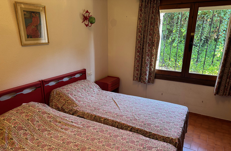 The villa comprises a welcoming living and dining area, a fitted kitchen, a master bedroom en suite, and two guest bedrooms sharing a bathroom. From the main living areas there is direct access to a covered terrace and the mature garden, creating a lovely indoor–outdoor flow.