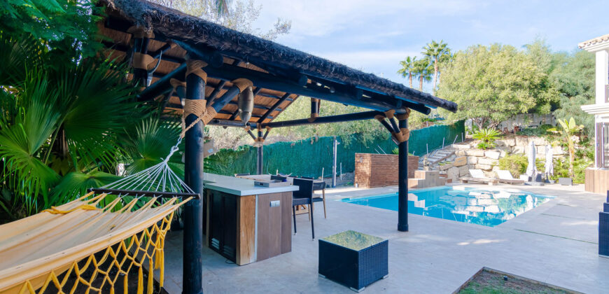 Whether you’re unwinding in the luxurious interiors, taking a refreshing dip in the pool, or admiring the picturesque surroundings from the rooftop, this villa in Nueva Andalucía offers the epitome of refined living and relaxation on the Costa del Sol.