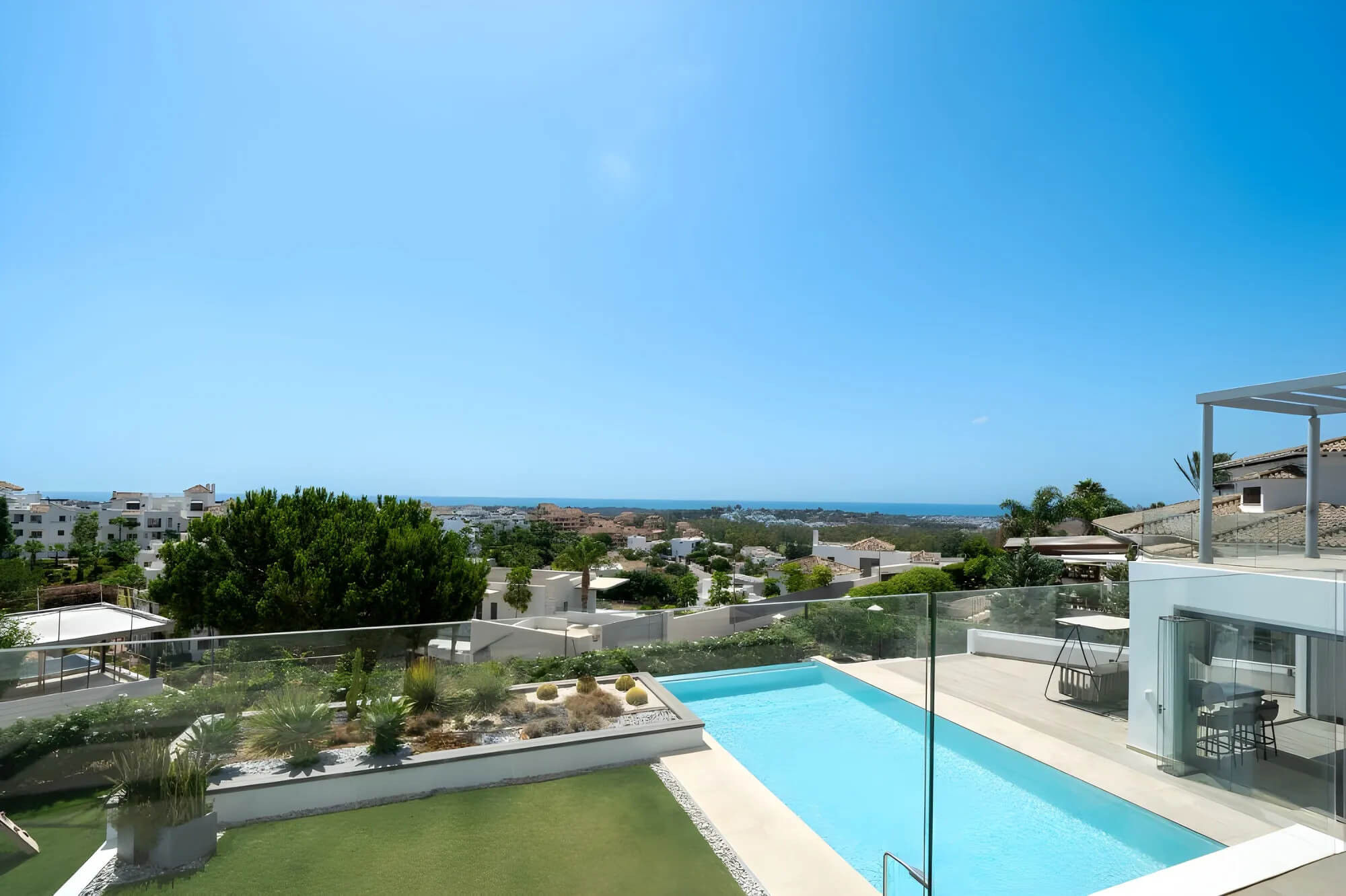 Escape to a tranquil oasis in the picturesque hills of La Alqueria, Marbella, where luxury meets sustainability in this remarkable villa. Boasting six bedrooms and eight bathrooms, this architectural marvel is a testament to German precision and quality construction.
