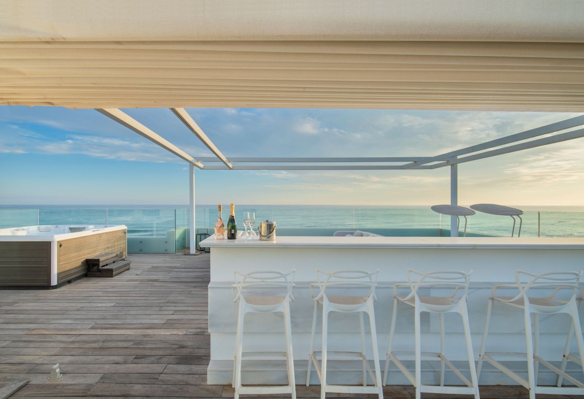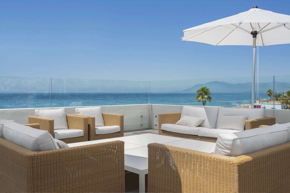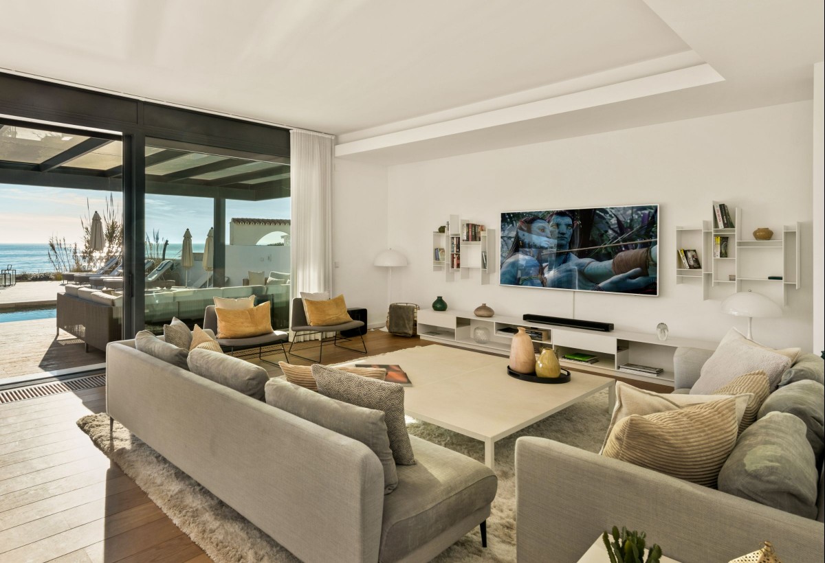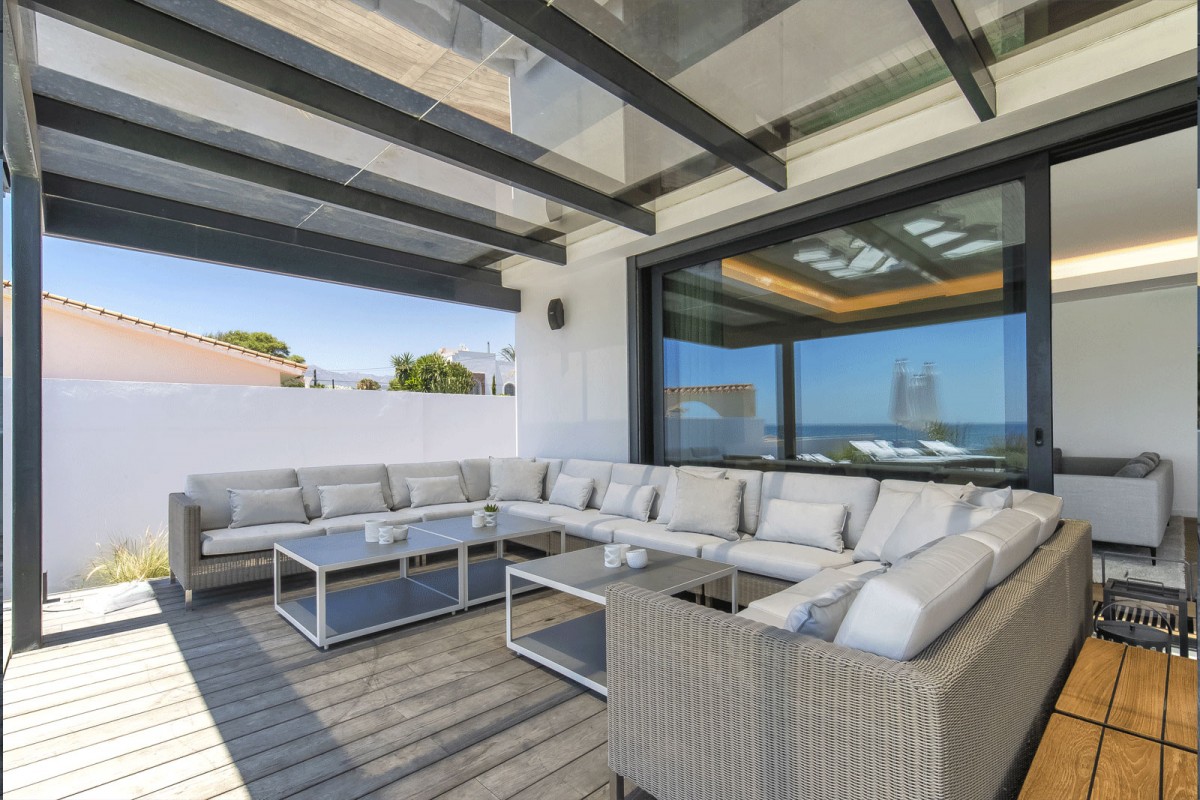 This modern Villa is located right on the beach in East Marbella. From the decking surrounding the pool, you can step directly onto the beach. Superb location, and within easy driving to all amenities including a variety of local restaurants and bars, and very close to the famous Nikki Beach.