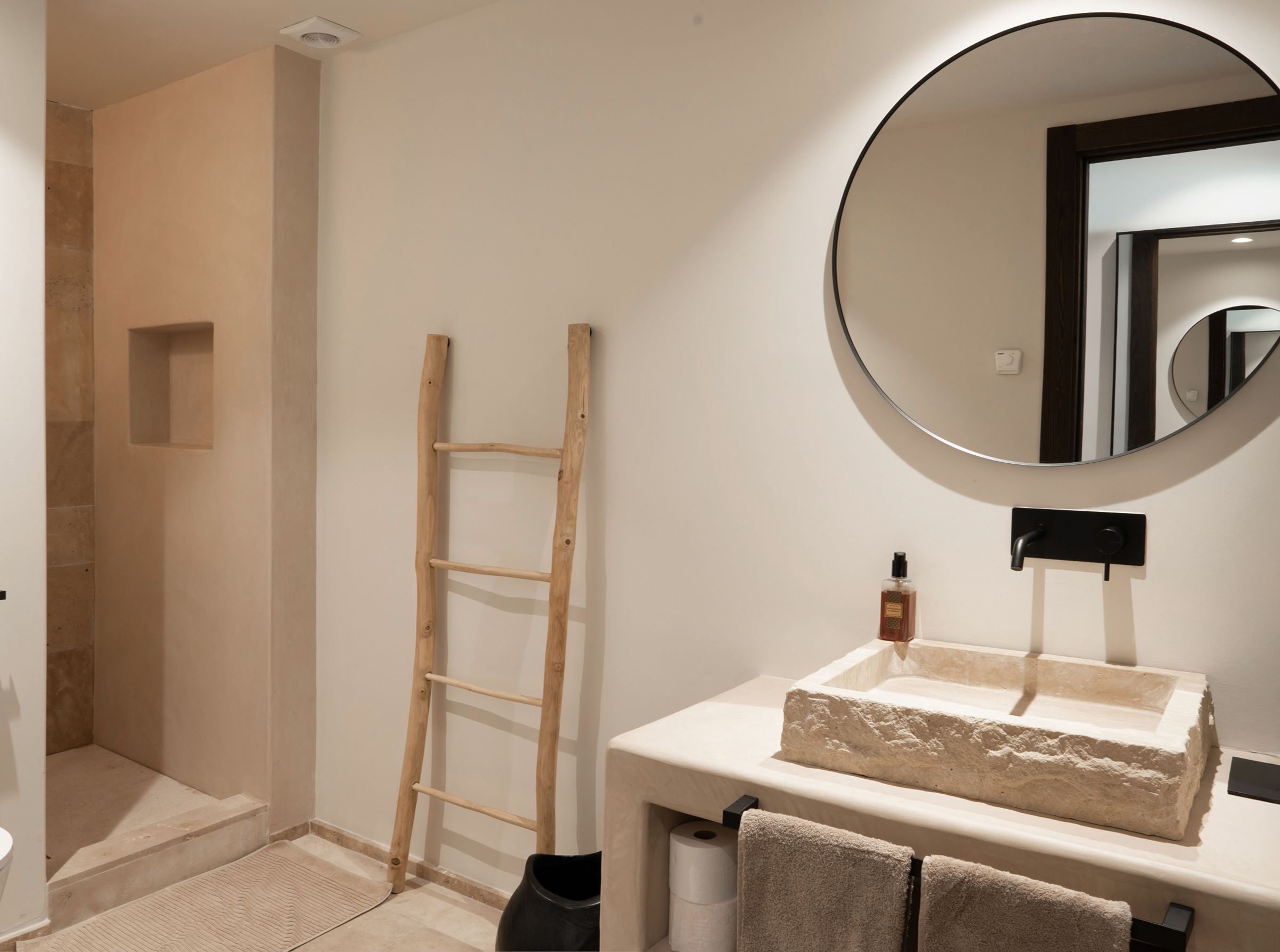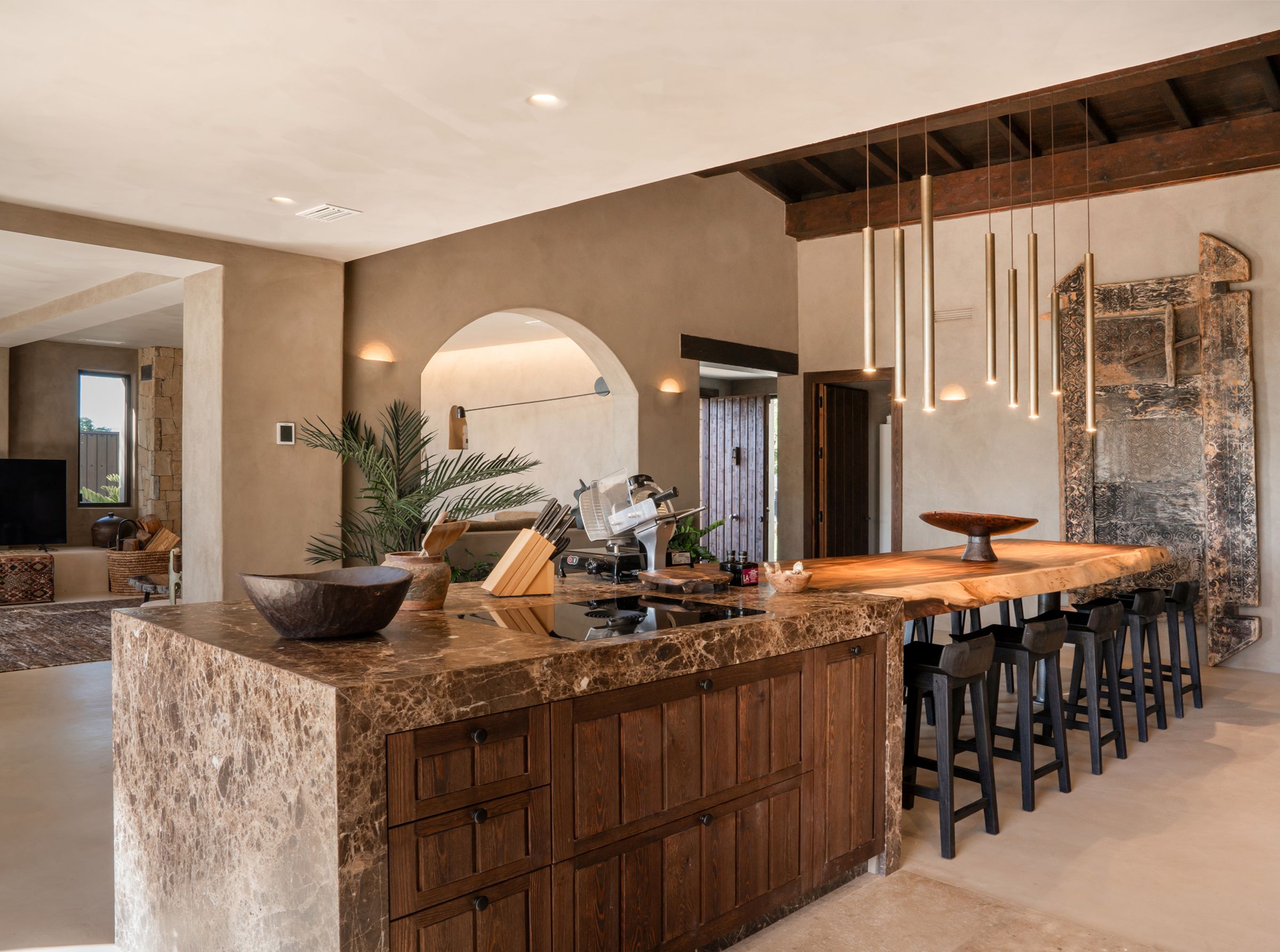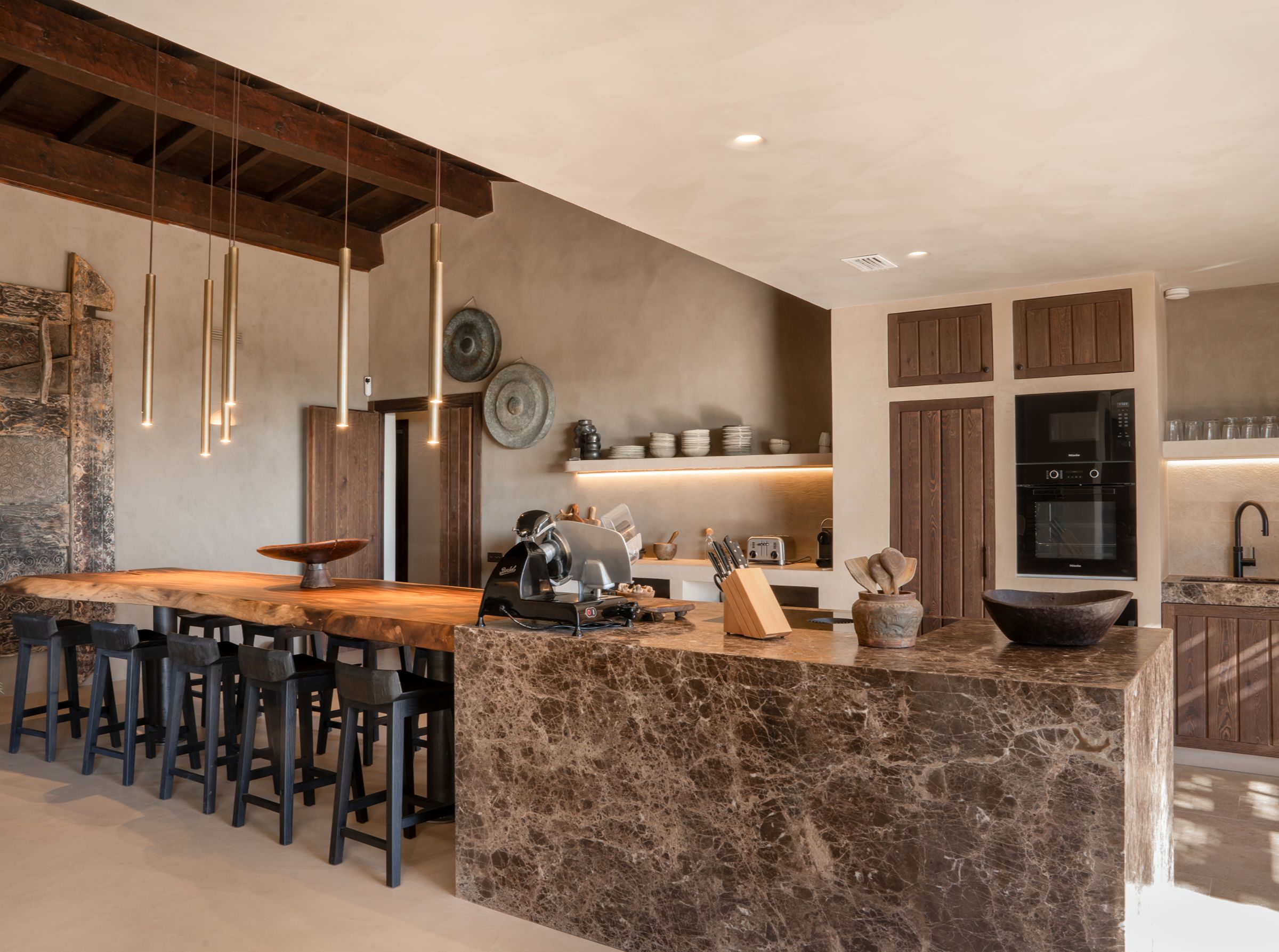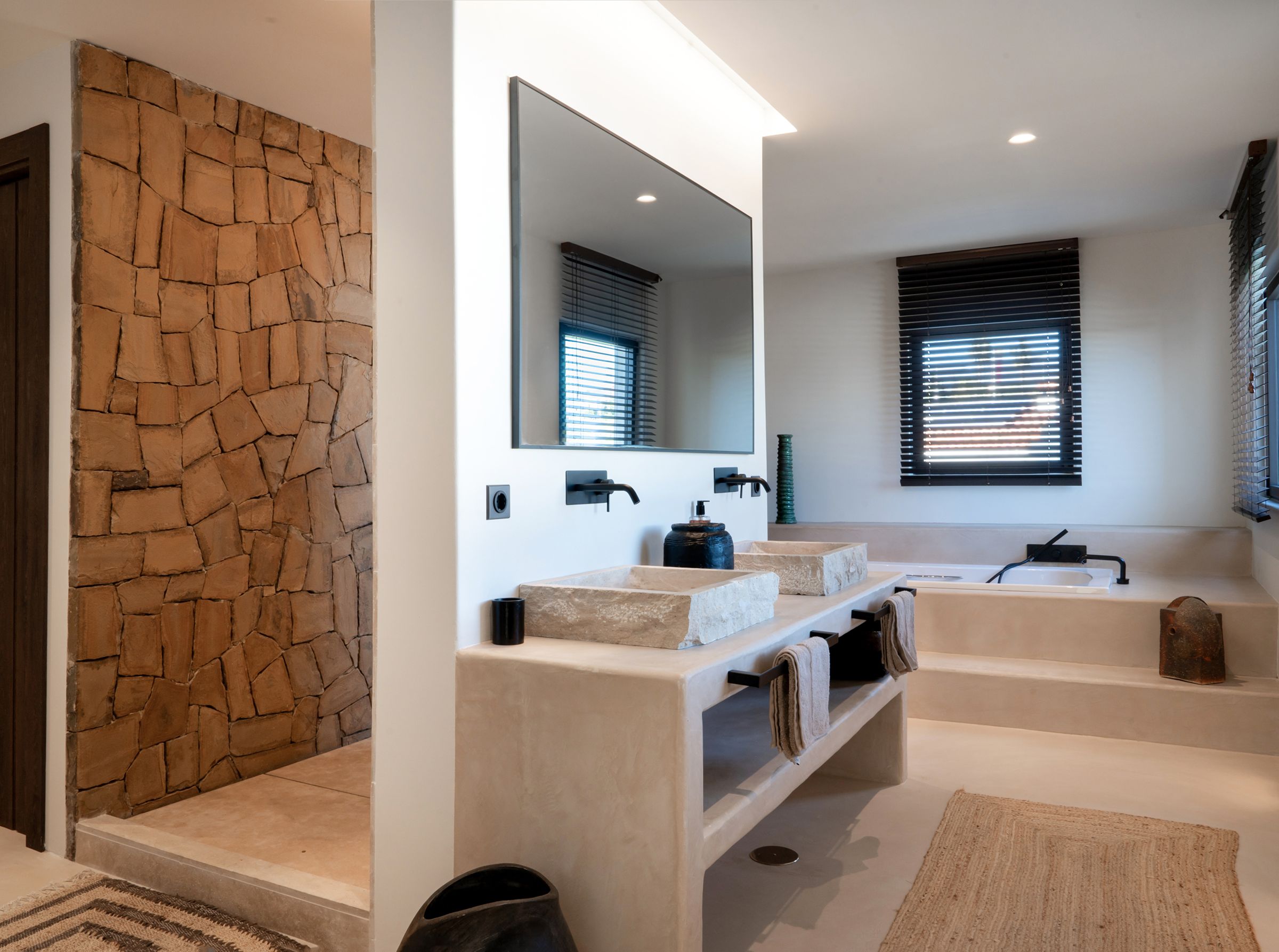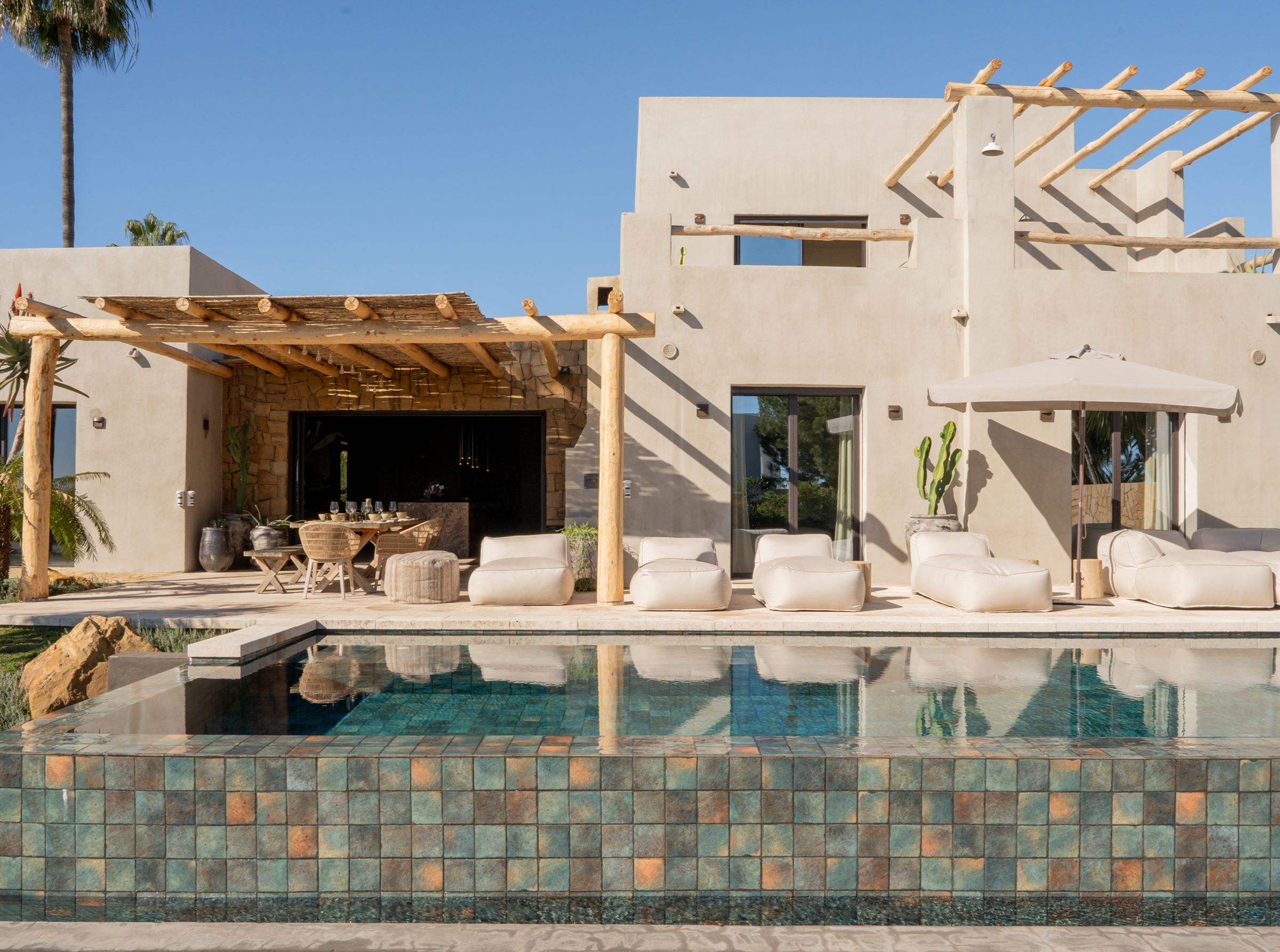 A truly unique property, fully renovated in 2024, blending inspirations from Mexico, Thailand, Ibiza, and Andalucia. Situated in the emerging area of Selwo, this villa offers stunning sea views from the garden and swimming pool level. This exceptional home features 5 spacious bedroom ensuites spread over two levels, a cozy living room with a working fireplace, and a spectacular open-plan kitchen with dining area, storage, and a guest cloakroom. The exterior boasts a shower room for the heated infinity pool and a carport for two cars. Primarily south-facing, the property is surrounded by a beautifully landscaped garden with various seating areas, a pétanque court, and an exotic pergola with a lounge corner perfect for relaxation. The main terrace includes an Argentinian barbecue and an elegant wooden table for al-fresco dining. The master suite occupies the entire upper floor and features a private open terrace with sun lounger, an outside shower and the suite offers a spectacular dressing room and complete bathroom with bath and shower. The villa’s unique design incorporates polished concrete floors throughout, underfloor heating in all bathrooms, additional wall insulation, and individual air conditioning units for both heating and cooling, as well as ceiling fans. Sustainability is a priority, with 24 solar panels installed to supply hot water and heat the swimming pool. Located less than 1 km from the beach, the property is within walking distance of three restaurants, the beach, a new padel tennis club, and a short drive to Estepona (10 minutes), Puerto Banús (10 minutes), and Malaga Airport (45 minutes). This architectonic masterpiece, both in the house and garden, is truly incomparable on the coast.